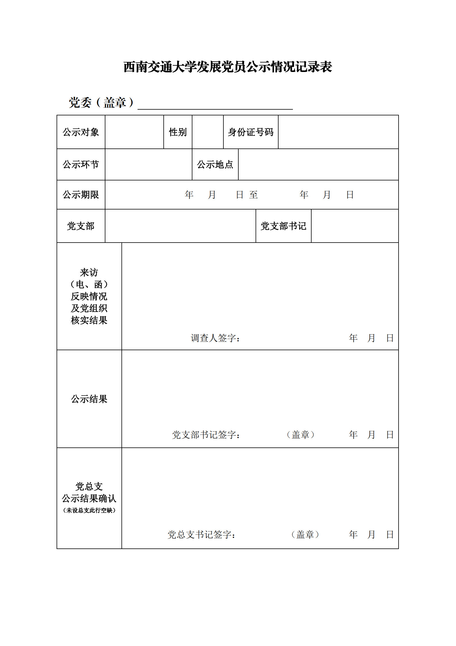 发展党员公示情况记录表样例: