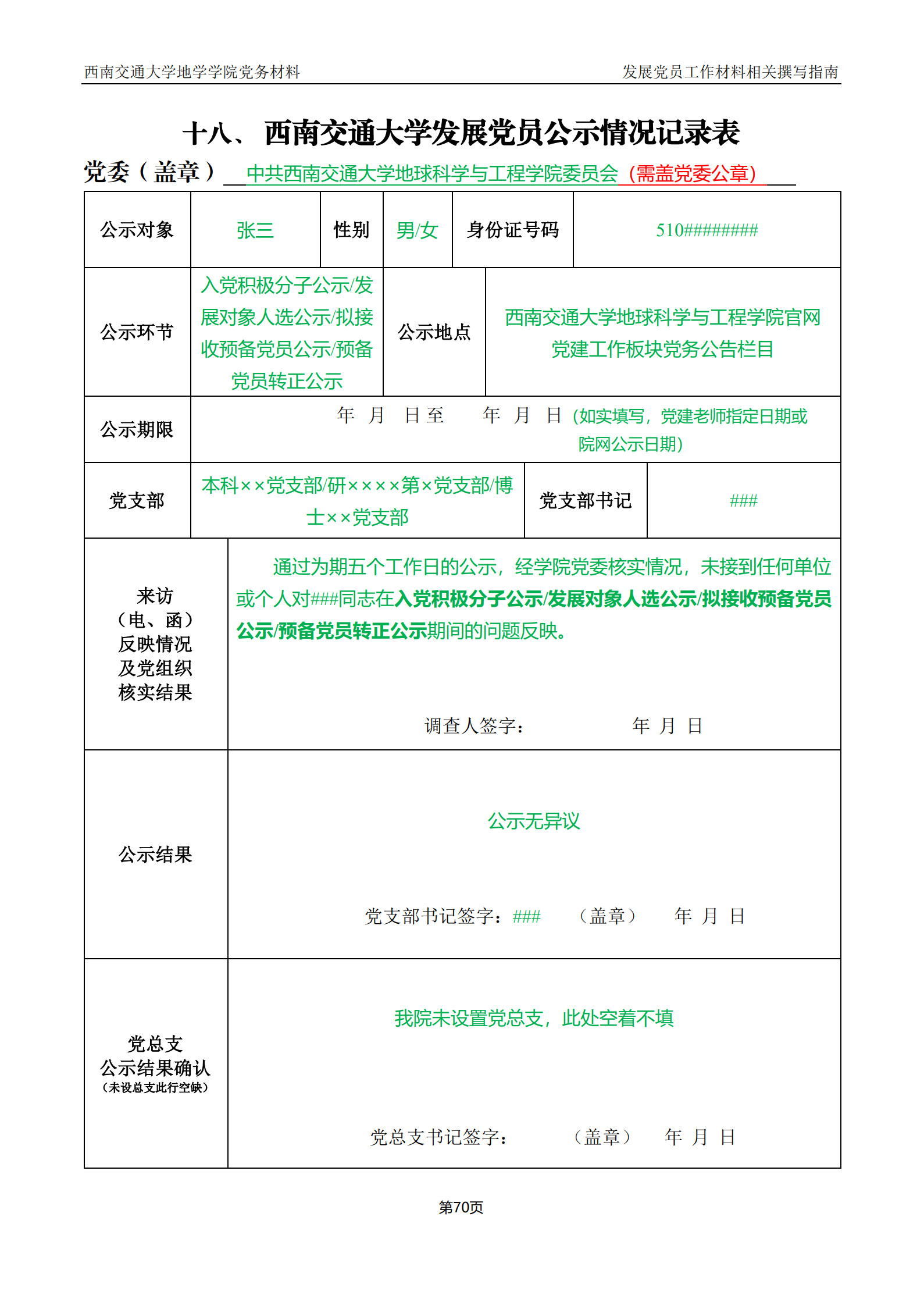 发展党员公示情况记录表撰写指南:
