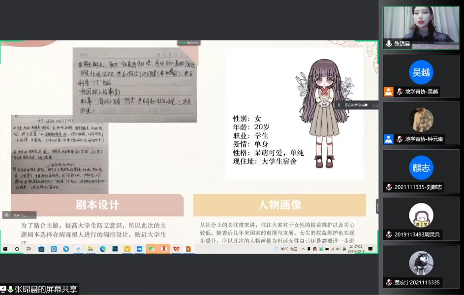 决赛于12月12日线上举行,答辩前,地学青协指导老师罗然老师对本次大赛进行精彩致辞。在答辩过程中,各位参赛选手用精彩的发言为我们展现了其作品的创作思路、制作过程等,呼吁大家做到“生命至上,终结艾滋,健康平等”。答辩结束后,学生园区自我管理委员会指导老师刘颖老师对本次比赛进行了精彩深刻的总结。决赛最后,由工作人员统计评委们公正客观的评分,评选出优秀作品共11项。