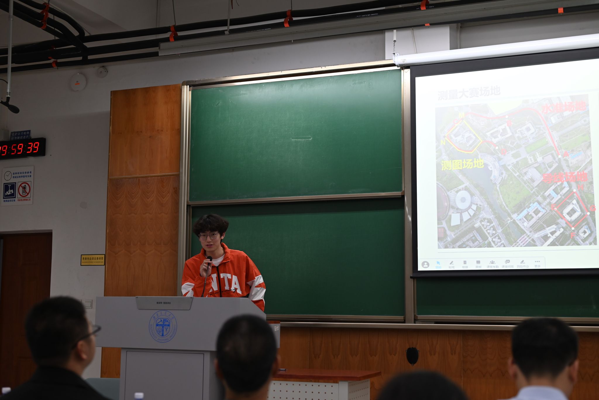 测量协会会长任占昊说明了此次大赛的报名情况,然后为选手们详细介绍了比赛场地、比赛规则及大赛注意事项,并表示测量协会将全力为比赛顺利开展保驾护航。