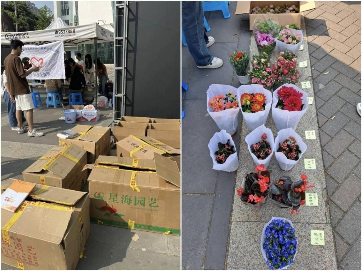 活动开始前,地学青协志愿者们准备好鲜花和各类物料,做好活动开展的各项准备。