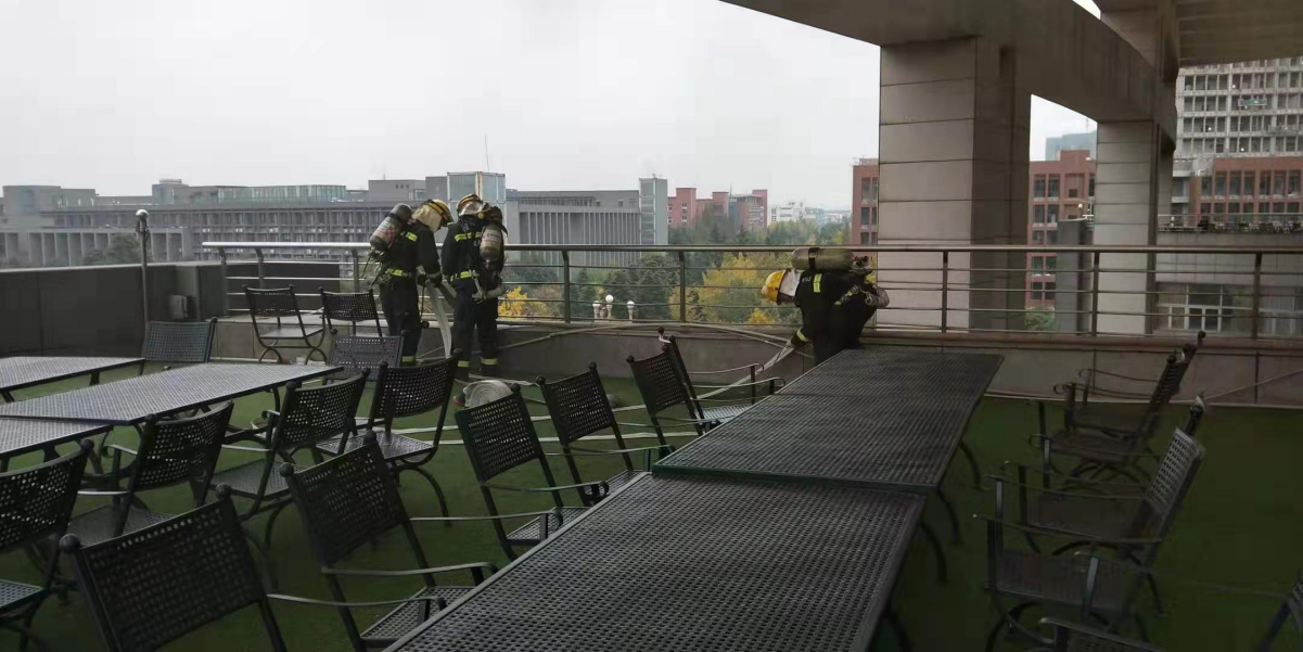 图书馆引导人群正确疏散。救援人员携防烟呼吸器、喊话器和强光电筒等设备进入图书馆展开灭火、搜救与疏散等相关工作。