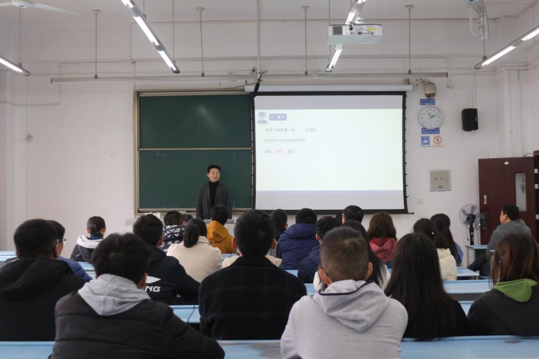郭文琦介绍了学习的重要性,提醒同学们需掌握基础知识,制定合理目标,完成学生应完成的任务。随后郭文琦从课前、课中和课后三方面介绍了学习的方法。其中强调了自学的重要性。