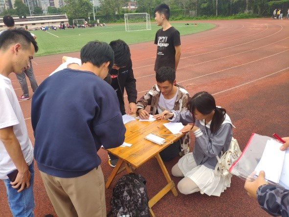 犀浦校区南区体育场举办了以“青春心向党,建功新时代”为主题的团日活动,2018级测工第一团支部成员都参与了本次团日活动。本次活动包含了4个项目,分别是