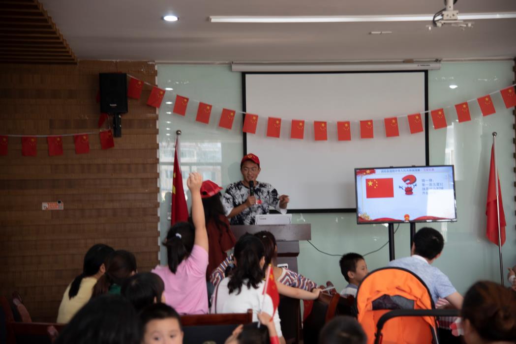 学生同时也是国旗知识主讲夏子明同学上台传授国旗知识。这时小朋友们安静极了,会场里回荡着夏子明同学清朗的声音。为了调动小朋友们的积极性,鼓励小朋友们多记关于国家,关于国旗的知识,我们还在讲座中添加了有奖问答环节,很多小朋友都很棒,回答出了很多问题,大大出乎我们的意料。