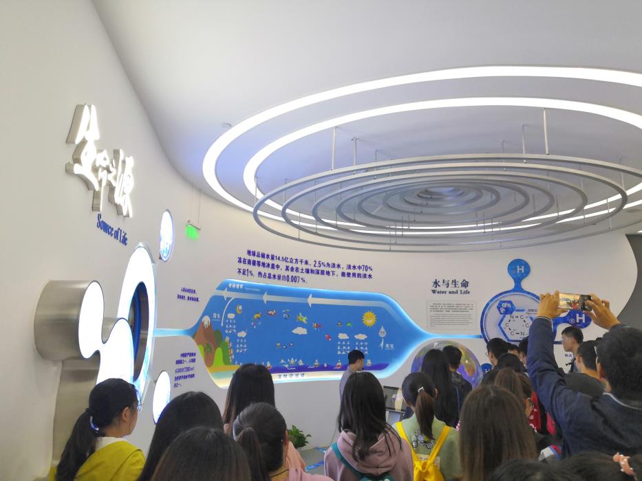 周四下午一点半,同学们于西门外的石犀里准时集合。清点人数后乘地铁前往科技城,再步行至目的地—天府新区第一下沉式水厂。尽管路途有些遥远,同学们都按计划安全到达。初到天府新区第一下沉式水厂,还以为到了公园,周围不仅有茂盛的绿化,还有各类免费的健身器材,让人眼前一亮。沿着绿道往前,就遇见了等候我们的讲解老师。在老师的带领下,我们先参观了天府新区水环境科普馆。讲解老师给我们介绍了城市污水的收集系统,和水厂的大致处理过程。