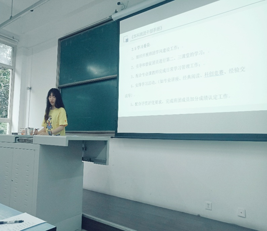 本次培训从学委的责任展开,王晨部长引用了本科班团干部手册中对学习委员的要求,总结了学习委员正学风,架桥梁两个方面的责任。强调学习委员首先要端正自己的学习态度,保证自己的学习成绩,保证全勤。在做好自己的前提下,积极主动带领班集体参与学术活动,引导和督促班级人员进行第二、三课堂的进行。更为具体的,王晨部长还说到:“要及时与学习态度不端正,学习不积极的同学谈心,了解他们的思想并引导他们积极向上。这是对同学们负责的行为。”