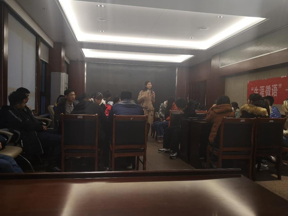紧接着是“菁英课堂”培训的选修课程。选修总共分为四次课程:博士沙龙、PPT制作、心理讲座和职业生涯规划。我们邀请了博士生学长学姐们,信息学院辅导员、ppt协会的指导老师张鹏飞老师、张涛老师和招生就业处的龚老师就这四个课程进行授课,班团干部在选修课程中学习到了许多技巧,收获满满。