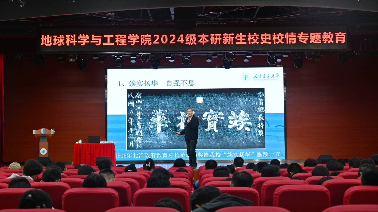 128年的办学历程、优良校风的形成以及百年来的辉煌成就,为同学们展现了学校深厚的历史底蕴。他通过讲述老一辈交大人的生动故事,如黄寿恒教授“天不怕地不怕,就怕黄教授讲中文话”的风趣幽默、罗忠忱教授的力学造诣、顾宜孙教授荣获的“金钥匙”荣誉、茅以升教授被誉为“最美奋斗者”、武胡景烈士的革命精神等,激励同学们以他们为榜样,秉承“严谨治学,严格要求”的优良传统,发扬“竢实扬华,自强不息”的交大精神,勤奋学习,刻苦钻研,为国家的繁荣昌盛贡献自己的青春力量,为学校的声望和辉煌再添新彩。