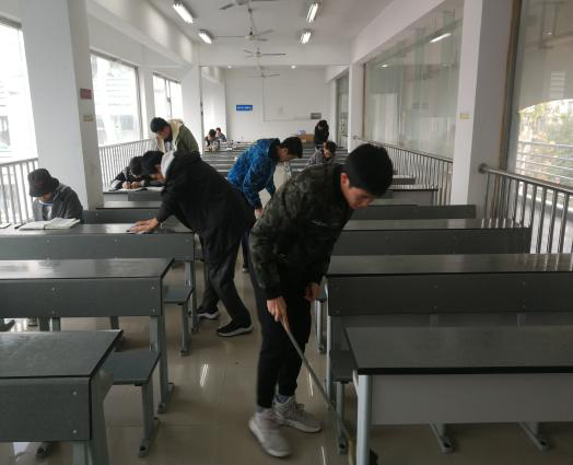 在打扫过程中有许多的同学在自习,为了不打扰他们,我们班的同学们在打扫时很自觉地保持安静,同时也对自习的同学表达了歉意。