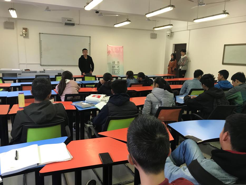 2018年11月9日上午第二讲(9点50—11点25分),2018级测绘二班于X1105开展了经典阅读分享交流会的团日活动。