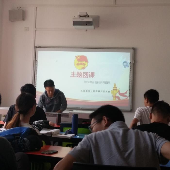 2018年4月26日星期四,地质第三团支部在x4134开展班级主题团课支部活动,支部应到实到24人。