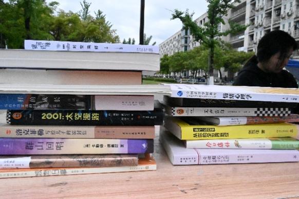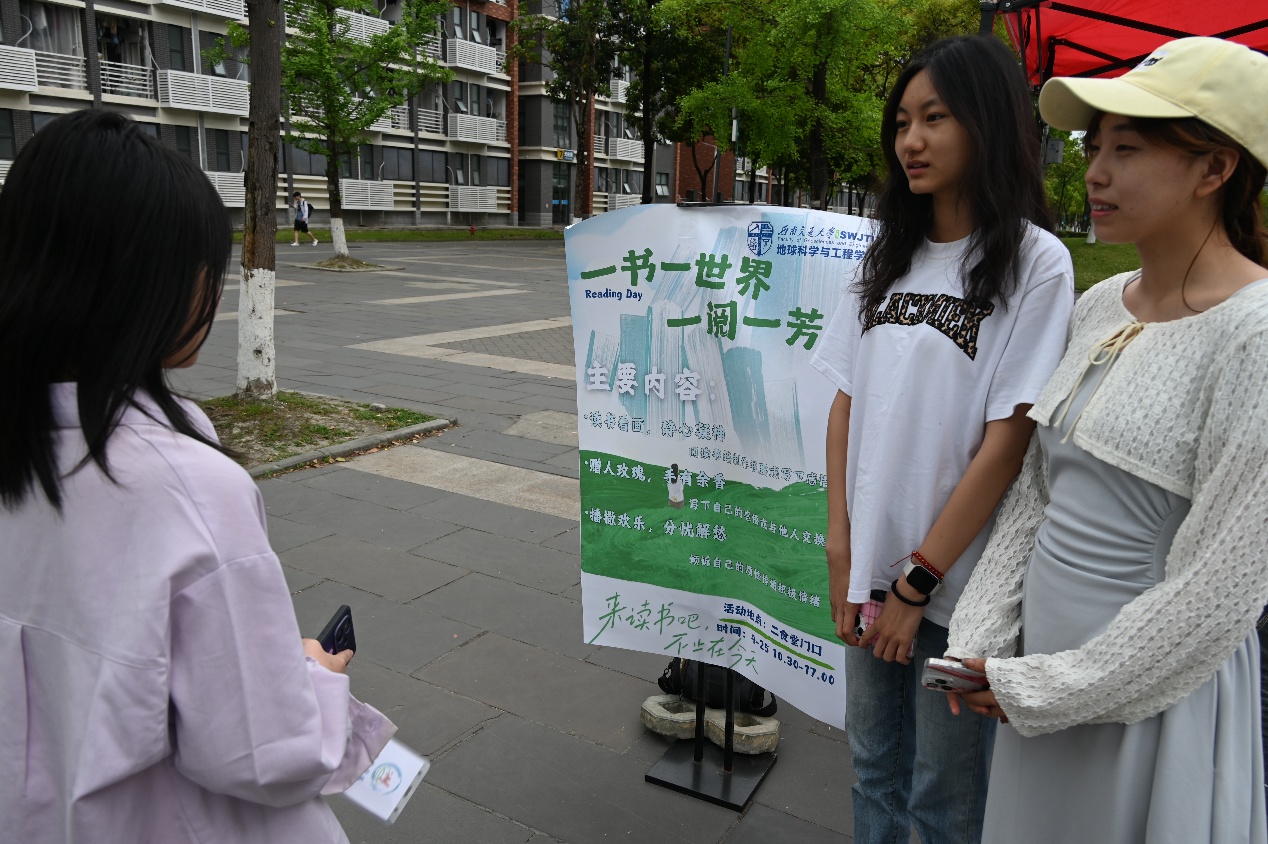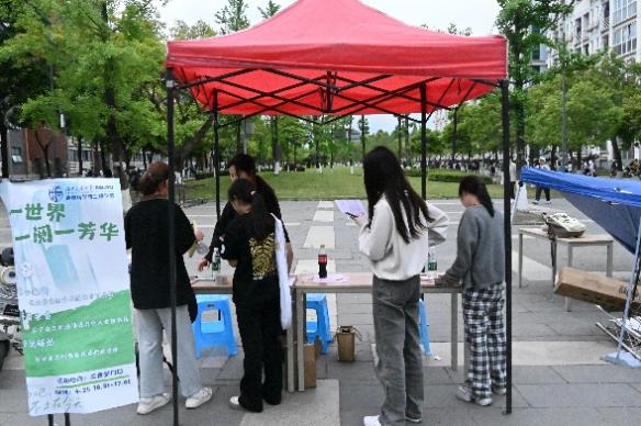 地新传媒组织的“一书一世界,一阅一芳华”图书交换及书腰制作活动于4月25日在二食堂门口顺利举行。