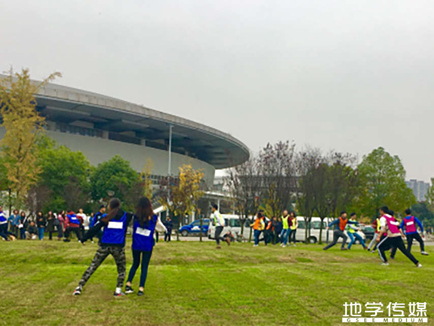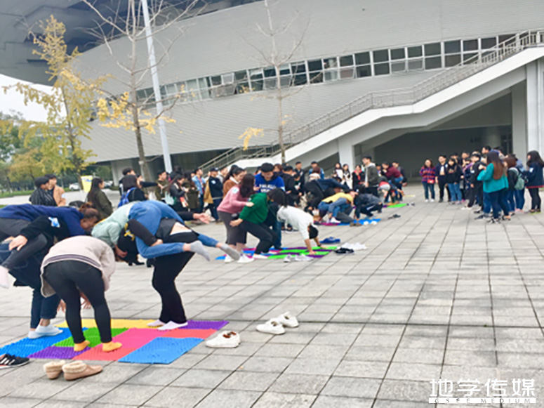 本次活动共有14组70个人参加比赛,比赛为计时制和淘汰制相结合的赛制。活动共有9个比赛环节,前五个游戏环节累计比赛用时,排名前12组进入第六关,最后再经过第七关第八关累加用时最少的前四个组进入第九关撕名牌环节,角逐最后的三强。活动以“踢毽子”活动拉开了序幕,同学们很快地进入了比赛状态,小组成员齐心协力踢满40个毽子迅速进入下一关,在经过“你比我猜”,“我摇你跳”等环节之后参赛成员的兴致更加高昂,现场的气氛更加火热。游戏环节中最考验小组默契度的是“乒乓接力”的游戏环节,每队队员依次从相隔10米的起点到终点,用筷子传递乒乓球,中途手不能触碰乒乓球,并且要保持传递过程中乒乓球不落地,直至第5人完成接力,游戏即算完成。虽然游戏过程中一些组的乒乓球掉地了很多次,但是大家没有放弃,仍然合力将乒乓球运到了终点完成比赛。在接下来的“七手八脚”和“田格连线”的比赛环节,在考验参赛成员默契度的同时也更加注重体能锻炼,同时还有智慧的比拼,让同学们在感受比赛乐趣的同时,身体也得到了一定的锻炼。整场比赛在最后的“撕名牌”活动达到了高潮,进入决赛的四个组在草坪上追逐撕名牌的同时,场下的其他组的观众也在奋力呐喊,好像自己也参加了比赛一样,比赛场面尤为激烈。这奔跑的快乐场面为寒冷萧瑟的冬天增添了一抹不一样的色彩。