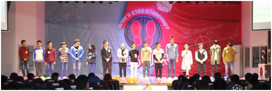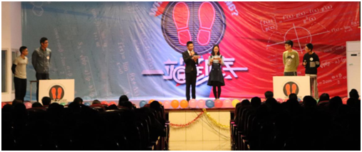 决赛之夜,群英共聚黍园三楼,共同参与这一场脑容量的比拼,速度的较量,心理的战场。开赛之时,来自学生会舞蹈队的精彩舞蹈点燃了观众的热情,也无形间缓和着场上紧张的气氛。十六名选手接着上台简单地介绍了自己,一站到底决赛之夜的第一声枪响便正式打响。