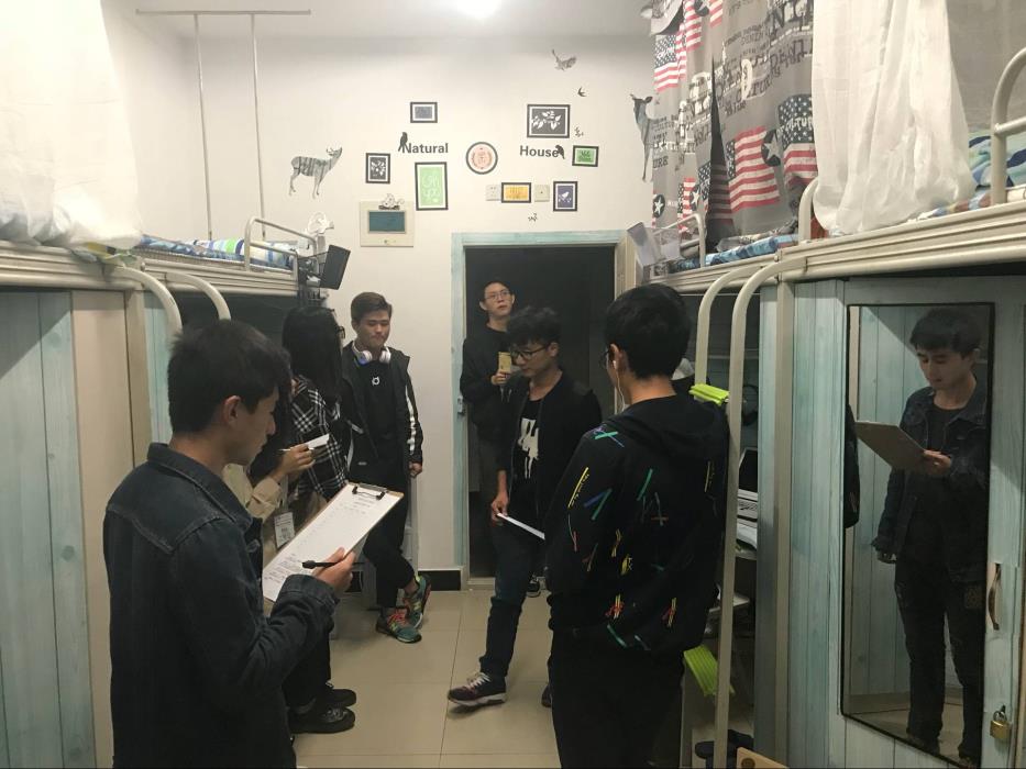 学生会部长随行,对参加初赛的寝室进行了打分评比。