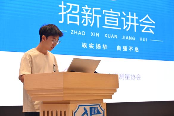 随后,学院学生会主席李其钟介绍了学生会的整体情况与品牌活动。他系统地讲述了学生会的组织架构、品牌活动及服务宗旨,展现了学生会在促进学院文化建设、服务同学发展等方面的重要作用。该环节帮助新生对学生会的职能与价值形成了整体认知,增强了学生组织在同学们心中的影响力和吸引力,为后续招新工作的顺利开展营造了良好氛围。