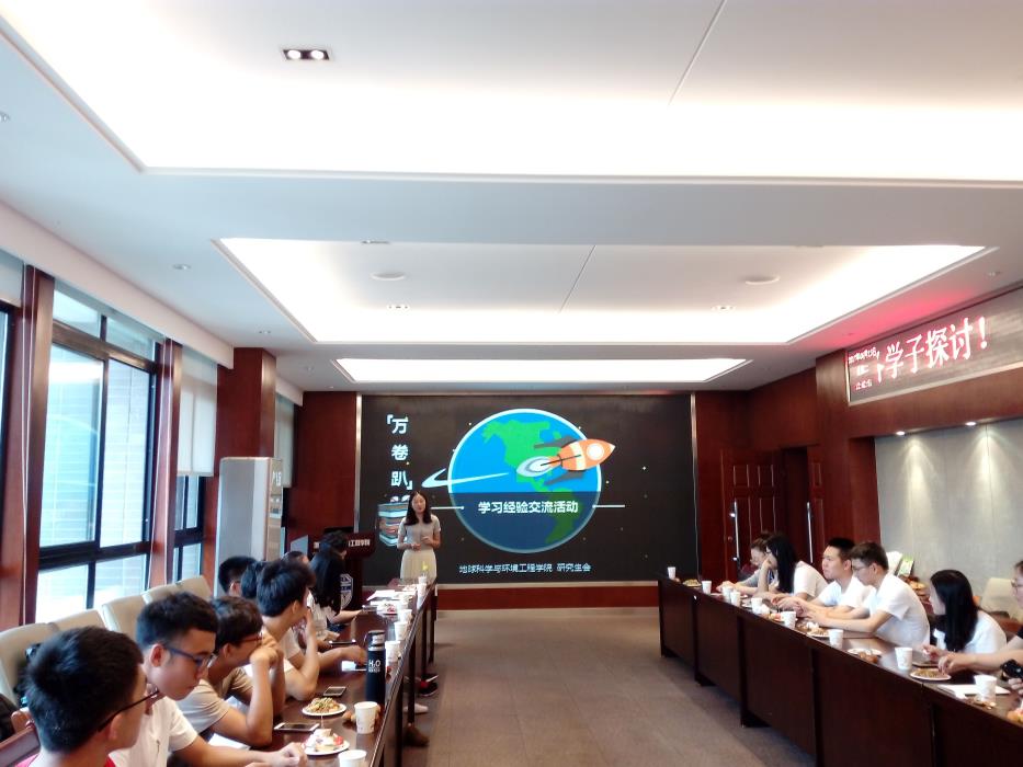 地球与环境科学学院研究生会会长王国元,主持人谢玮以及地球科学与环境工程学院研究生会全体成员。