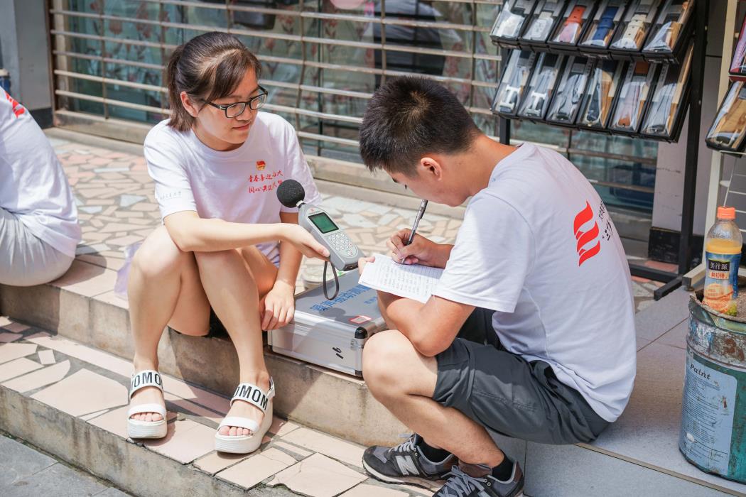 在测量水质的同时还进行了,噪声的测量,为了保证数据的准确性,我们依然选取了与21日相同的地点进行噪声的测量,虽然今天的太阳十分火辣,测量噪声的队员需要在太阳下呆4个小时,但是队员们却并没有有丝毫的松懈,直到下午六点活动结束。