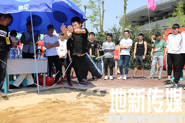 4月14日下午,在北区田径场进行学生男子、女子立定跳远比赛。运动员在经过简单热身运动后,比赛正式开始。运动员按照顺序依次上场,每一位运动员都精神饱满,富有活力,积极地等待比赛。比赛中,运动员两脚开立,双手向上使身体完全伸展,而后飞身一跃,像起飞的雄鹰抵达沙坑远端。参赛运动员们无论成绩好坏与否,不论身体伤痛,都在午后的烈日下,一次次起跳圆满完成自己的比赛。于他们而言,赛场上的成绩好坏,只要拼搏,就是对自我运动精神最好的诠释。