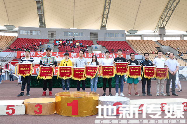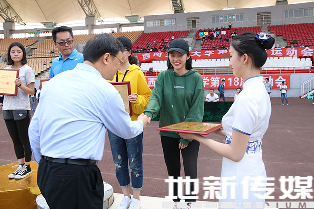 之后由体育部刘江主任宣布“最佳组织奖”获奖单位,并由体育部副主任高平为“最佳组织奖”获奖单位颁奖。地球科学与环境工程学院、土木工程学院以及峨眉校区等众多学院都获得了运动会“最佳组织奖”。