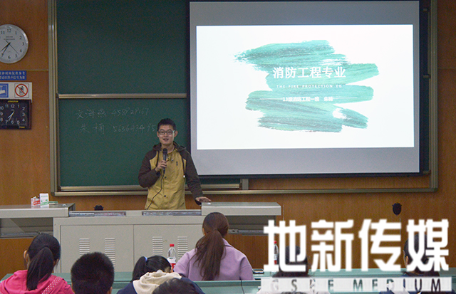 在X4155教室,首先由朱楠同学进行发言。朱楠的发言主要包括三个方面:消防工程专业介绍、学习经验分享和各个竞赛项目的介绍。一开始,朱楠正式详细介绍了消防专业,接着介绍了消防专业主干课程,包括必修课程和重要通识课;然后分析了消防专业发展方向。在读研方面着重介绍了读研选择的各个学校的师资力量、试验条件及研究方向,在保研方面着重分析了保研科目在各学期的分布以及难度比较。接下来,朱楠结合自己大学的学习生活和同学们分享了自己认为学习过程中最重要的几点要求:一、从第一个学期开始让自己保持优秀。二、朱楠认为最重要的一点是,上课不玩手机,抓紧课堂时间,提高课堂要效率。三、提前做好大学生涯规划。四、关于课堂提问,五、自己独立完成作业。写作业的过程就是复习的过程,尽量独立完成作业。最后,朱楠结合自己的参赛经历介绍了适合消防专业同学参加的各竞赛的具体情况。