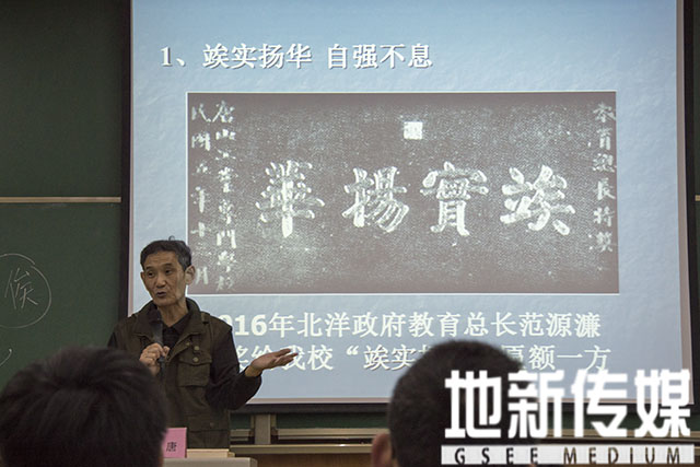 最后,梁锦唐介绍了我校百十年铸造的精魂——竢实扬华、人才辈出、蜚声中外、开拓创新、励精图治。因优秀毕业生茅以升的作业在参展中以高分荣获冠军,北洋教育总长讲给我校“竢实扬华”匾额一方。梁锦唐认为其意为坚持实事求是,扬弃华而不实。