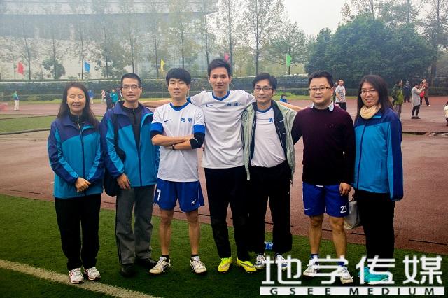 随后进行的是教职工男子4*100米,同学们看见自己的老师与辅导员上场激动异常,看台上响起阵阵掌声,呐喊声与欢呼声。听到这些,教职工们更加努力,希望能为院争光。今年地院派出了廖昕,杨都强,陈建奇,刘了四位老师出阵。发令枪响,一棒的廖老师一马当先,连续超越好几名老师后,熟练的将棒传递给了二棒的杨辅导员,杨辅导员不甘示弱,继续稳定局势,将棒交给三棒陈老师,陈老师继续拉大领先水平,最后将棒稳稳交与四棒的刘老师,刘老师奋力冲刺,使出全力,最终第一个冲过终点线,拿到了小组第一名。这一刹,观众们沸腾了,选手们也激动的击掌庆贺。“漂亮!厉害!”人们纷纷前来祝贺,脸上充满胜利的喜悦。最终的总排名里,我们地院拿到了教职工4*100的季军,这也是我们有史以来获得的最好成绩,真心为他们庆贺!
