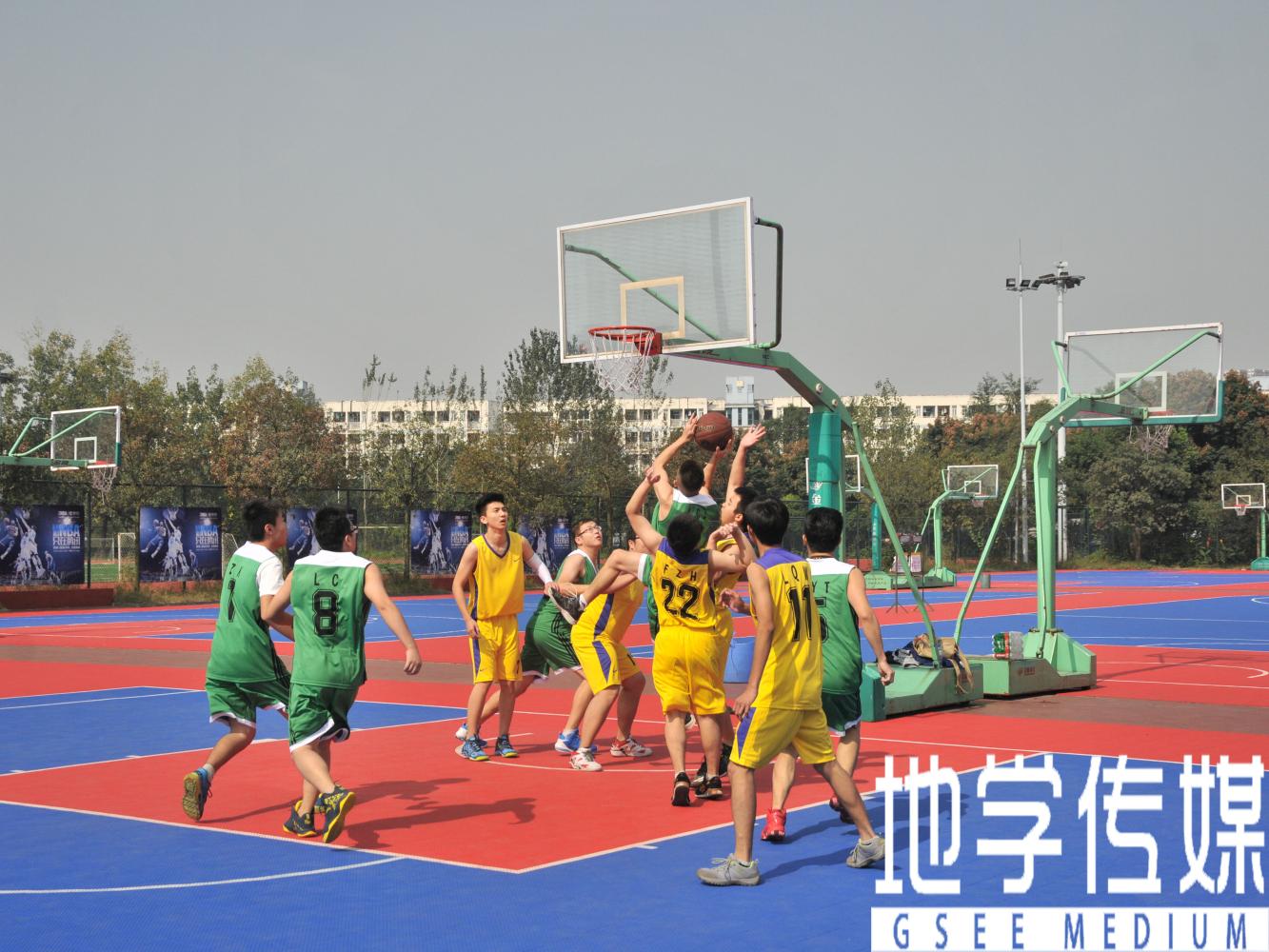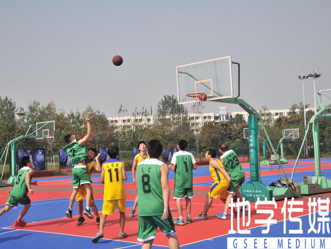 犀浦校区院系篮球赛决赛在北区篮球场打响,在充满激情的音乐声中,身穿红色球衣的污污漫画