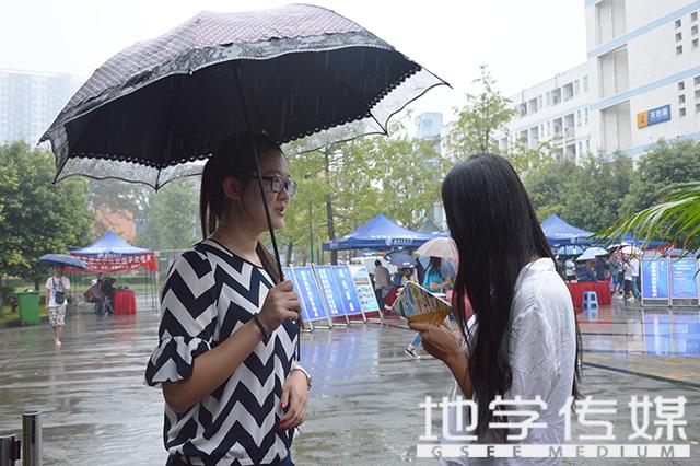 雨一直下,但接待处的人们热情未减。家长们冒雨陪同孩子前来报道,青协成员贴心地将早已准备好的雨伞递上。笔者在与青协团队负责人的交谈中了解到:他们早在20号便对迎新工作作出了具体安排,各个部门的成员也明确了迎新工作的整个流程。他们与学生会共同协作,进行交接班,合理分配了任务,有条不紊地查看新生录取通知书、扫描条形码、进行入寝引导……在谈到对学弟学妹们的印象时,他们表示:这一届的新生都十分活泼开朗,并不因为初次见面感到不好意思。也正是青协团队的这份付出和温暖,让这些新同学有家的感觉。