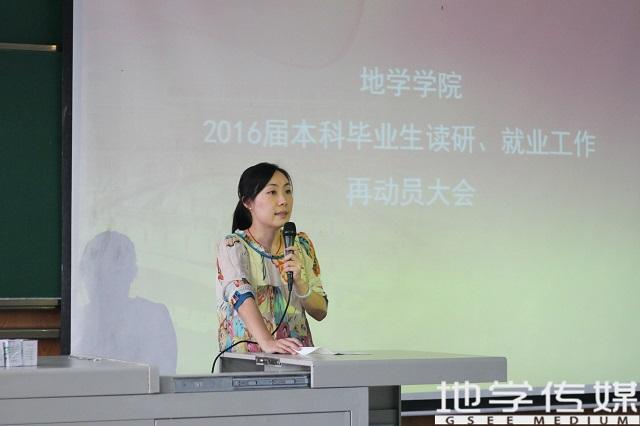 2016届本科毕业生读研及就业工作再动员大会在我校犀浦校区4359教室如期举行。参加本次大会并担任主讲老师的是我院副院长齐华教授和党委副书记傅尤刚老师,参会的还有辅导员王静雅老师,我院所有2016届的准毕业生参加了本次大会。