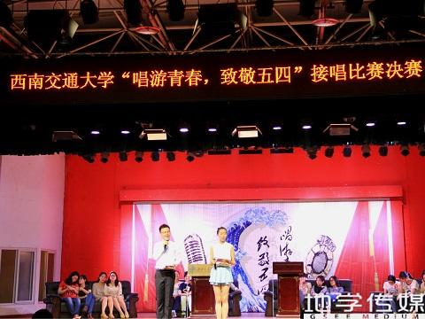 2015年4月27日晚,由地球科学与环境工程学院分团委主办,地球科学与环境工程学院学生会承办的“唱游青春,致敬五四”接唱比赛决赛在一食堂三楼隆重举行。到场嘉宾有政治学院团委书记吴磊,生命学院团委副书记魏源成,公管学院团委副书记张哲,电气学院辅导员高晗雨、林静英老师,艺传学院辅导员王远方老师,经管学院辅导员任凯利老师和污污漫画