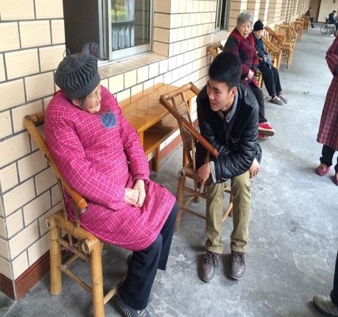 由于有的老人走路不方便,一直都是坐在轮椅上,我们就搬来板凳和老人们坐在一起。我们和老人们一起聊天谈论日常生活,聆听老人的故事。我们也一起祝老人们身体健康、生活快乐、长命百岁,答应老人我们以后会经常去看他们。其实我们都知道,老人缺的不仅是物质上的资源,还有内心精神上的陪伴。他们要求的并不多,只是希望我们这些后辈能够经常去看看他们,和他们一起聊天,让他们感觉不再孤单。