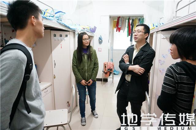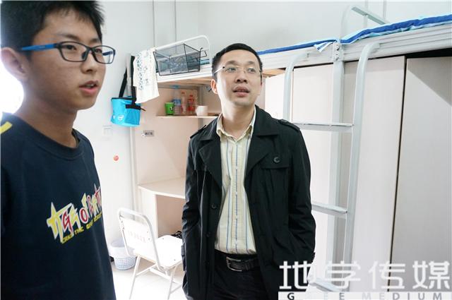 党委副书记傅尤刚老师亲自前往各个宿舍看望2014级新生。
