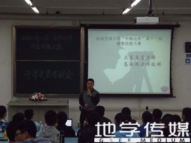 首先,主持人宣布大会开始。接着,由测量技能大赛指导老师高淑照致辞。高老师首先对成都“中海达”集团代表的到来表示热烈欢迎;接着,他从专业的角度对测量大赛做详细地讲解:本次比赛的规则和国赛的规则一样,比赛的导线测量和上课时进行的导线测量有一些不同,大家要注意闭合差的分配。他还就前期准备过程中的一些故事分享给大家,让大家有幸见证了高老师为本次比赛的付出。