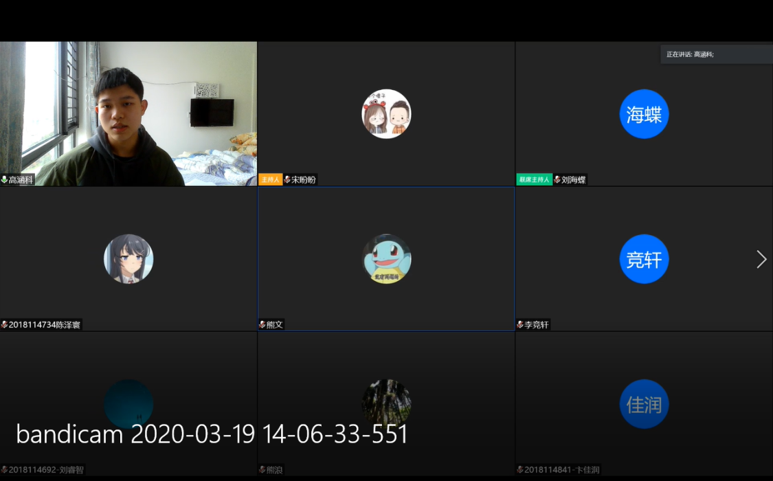 会议首先由我们的团支书刘海蝶开场,她介绍了此次疫情的情况并对此次疫情发表了自己的看法,然后对本次团日活动的议程进行了讲解。