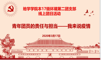 地球科学与环境工程学院环境2017级第二团支部以“战疫中最美的青春——团员青年的责任与担当”为主题的团日活动在线上举行。