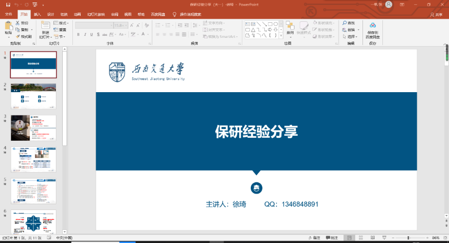 首先,主持人简要介绍三位分享人后,徐琦同学第一个开始了自己关于保研经验的分享,他从四个方面分别介绍了其个人情况:学年阶段安排,保研前期准备,保研相关事宜,并就关于夏令营部分进行了详细的讲解,徐琦同学准备充分,讲解详实。在后续提问环节中,也很好的回答了同学们的问题。