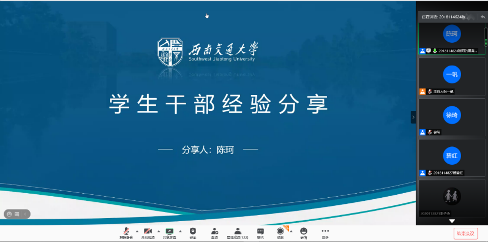 此次分享会邀请到了竢实扬华奖获得者徐琦同学,国奖获得者杨碧红同学和地学青协会长陈珂为20级本科大一新生进行经验分享。其目的是为了强化,“大抓思想政治引领”的政治责任,全面深化青年思想政治引领,推树先进典型引领青年,令学生们有更好的发展。