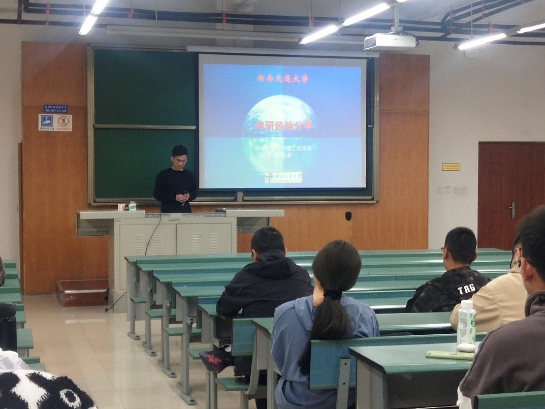 随后顾亚虎作为测绘类考研专业学硕第一、陈曦作为专硕第一进行考研经验交流分享。两位均提到了复习时间规划和复习参考资料的重要性,他们认为这两个模块是考研复习的重点,鼓励大家在决定考研之后一定要提前做好复习规划,调整自己的作息,同时灵活运用互联网资源,选择适合自己的考研资料。顾亚虎最后送给各位同学一句话“做一名实事求是的科研工作者”,而陈曦希望我们对生活“保持热爱”。