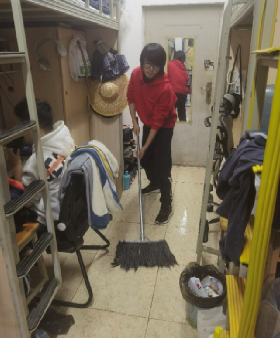 组织全体本科生积极开展宿舍卫生大扫除活动,同学们充分发挥不怕脏、不怕累的奋斗精神,纷纷拿起清扫工具热情高涨地投入到大扫除活动中,在大家的辛勤打扫下,宿舍环境卫生得到了明显的改善。