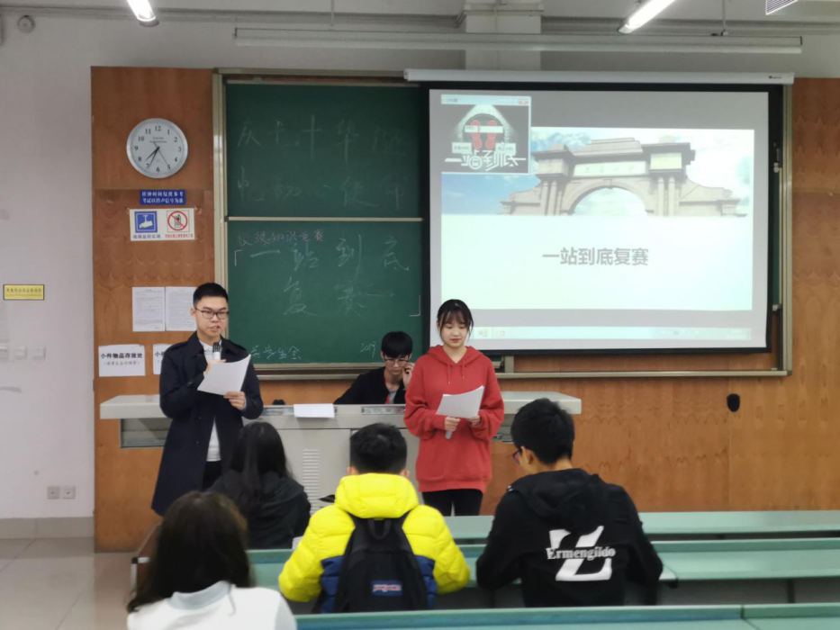由污污漫画 校团委主办,地学学生会承办的“庆七十华诞,忆初心使命”新生文化节—“一站到底”知识竞赛复赛在10月25日19:00于犀浦校区X4155、X4156圆满结束。