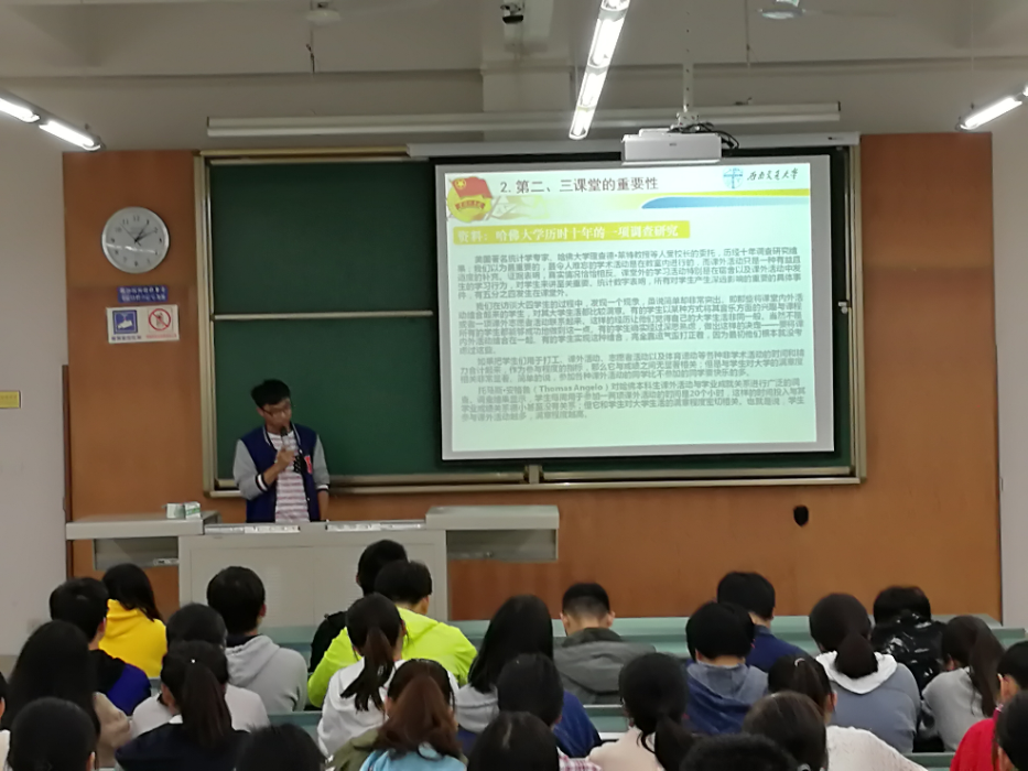 第二课堂运营负责人:熊浩然、张珂欣、郑嘉睿。三位学长学姐均为大一的学弟学妹们作出了生动详细地讲解。