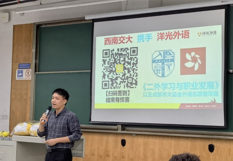 就业指导中心与洋光外语联合举办的小语种语讲座在X4158开展。本次讲座的主讲人为洋光外语全国明星讲师——汪子健老师。汪老师精通日韩法三国语言,有7年法语教学经验,曾在阿尔及利亚从事法语翻译。