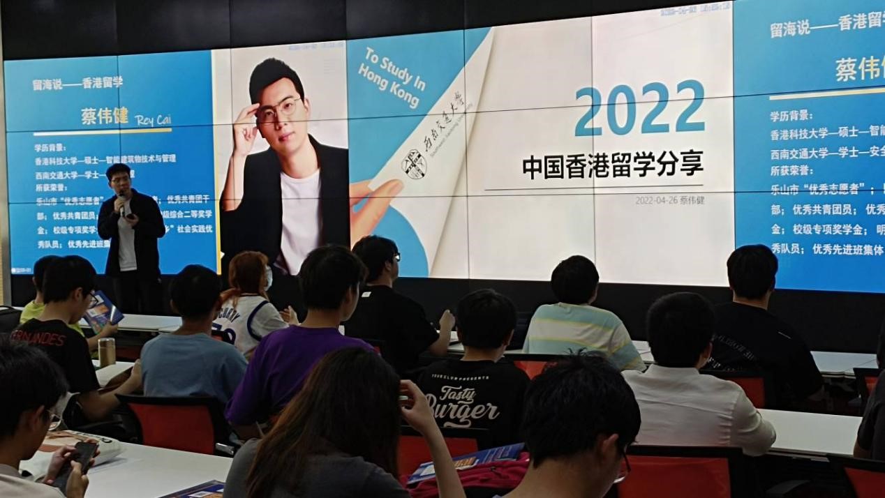 就业指导中心主办的“留海说”系列讲座第二期于4243顺利举办,此次活动旨在为有相关留学意愿和需求的本科生提供与有经验的优秀前辈交流的平台,帮助同学们了解留学的相关细节和注意点。本次活动特邀请到现就读于香港科技大学的蔡伟健学长为同学们分享自己的报考经验以及留学经历。