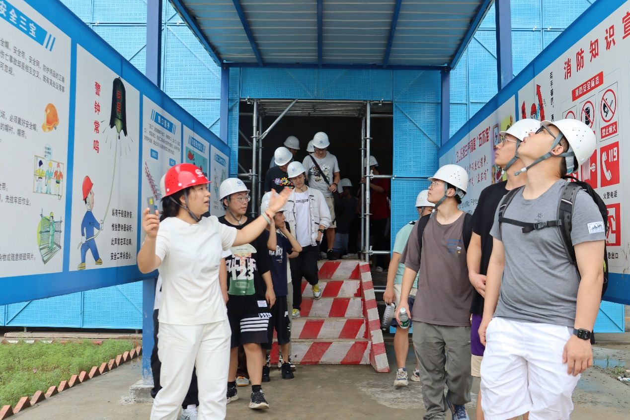 2019届校友、项目部技术人员何老师带领师生参观施工现场。