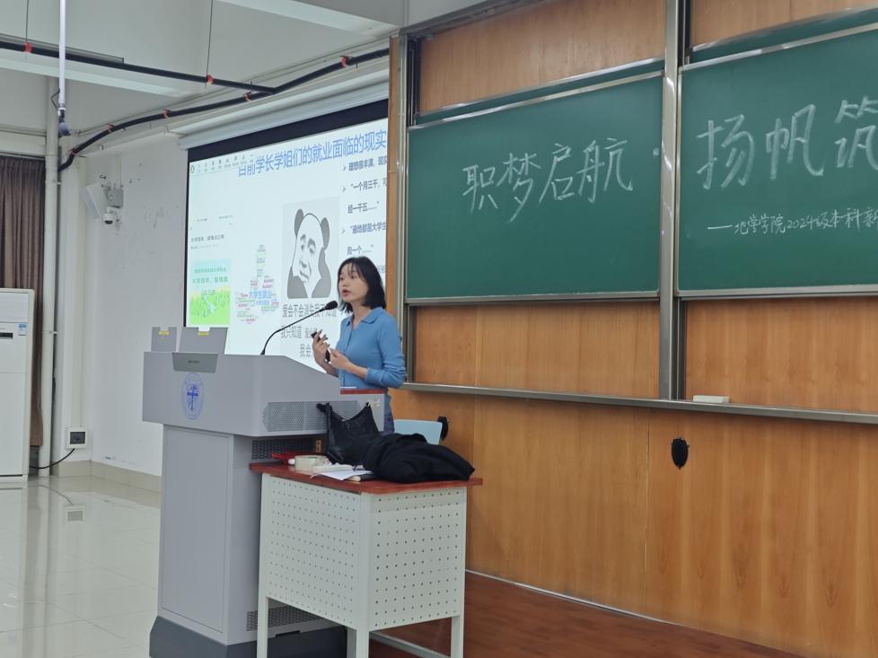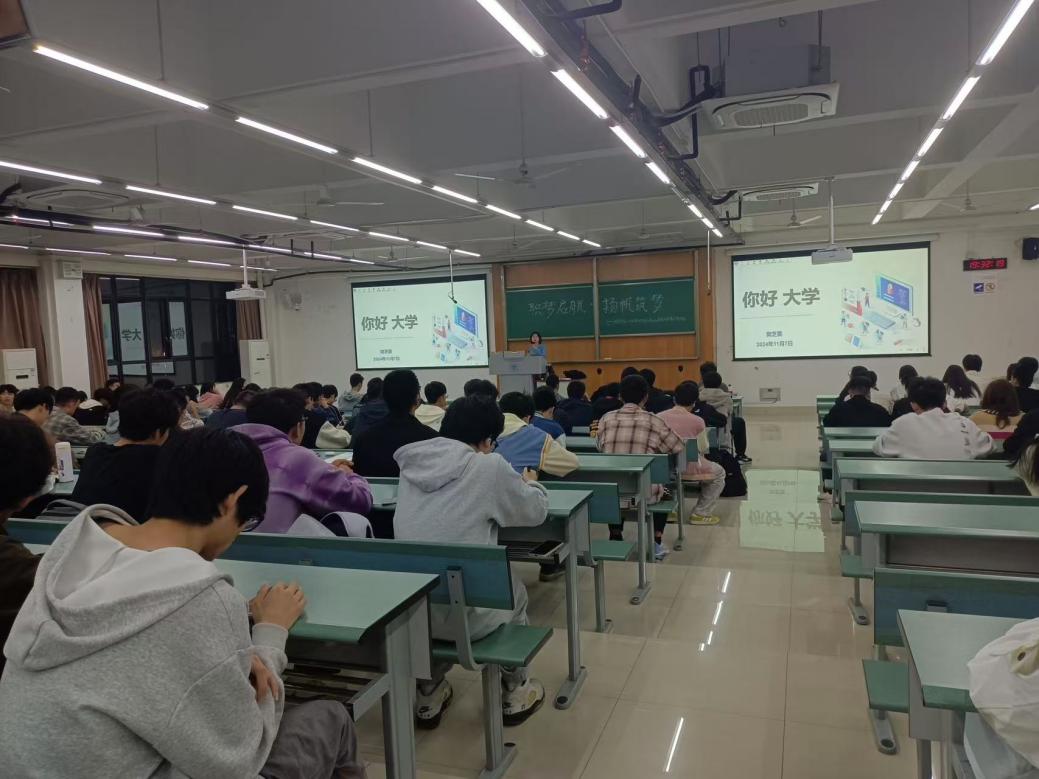 最后,樊老师鼓励同学们在大学四年中要探索自我,探索外部职业世界,寻找属于自己的核心竞争力。“每个人都有独特的优势,关键是发现并发挥这些优势,选择一条适合自己的奋斗路径。”她的话语激励了在场的每一位同学。