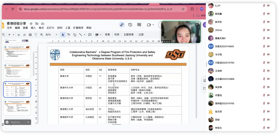 本次分享会旨在帮助有意去香港读研的同学理清香港读研申请流程、香港的各所高校的特点、以及香港工作生活的一些攻略,特邀请香港读研的优秀校友饶宛芸,以学生的第一视角分享经验。在会上,学姐首先向同学们介绍了香港进修的优势、香港前五大学简介与排名及硕士申请要求,而后分享了这前五所大学的就读体验,向大家列出了所需的申请材料清单、关键时间节点与注意事项,切实联系同学生活拿出了以学校为中心选取周围的地铁站附近住宿的租房攻略,实习推荐等一系列建议,让大家受益匪浅。
