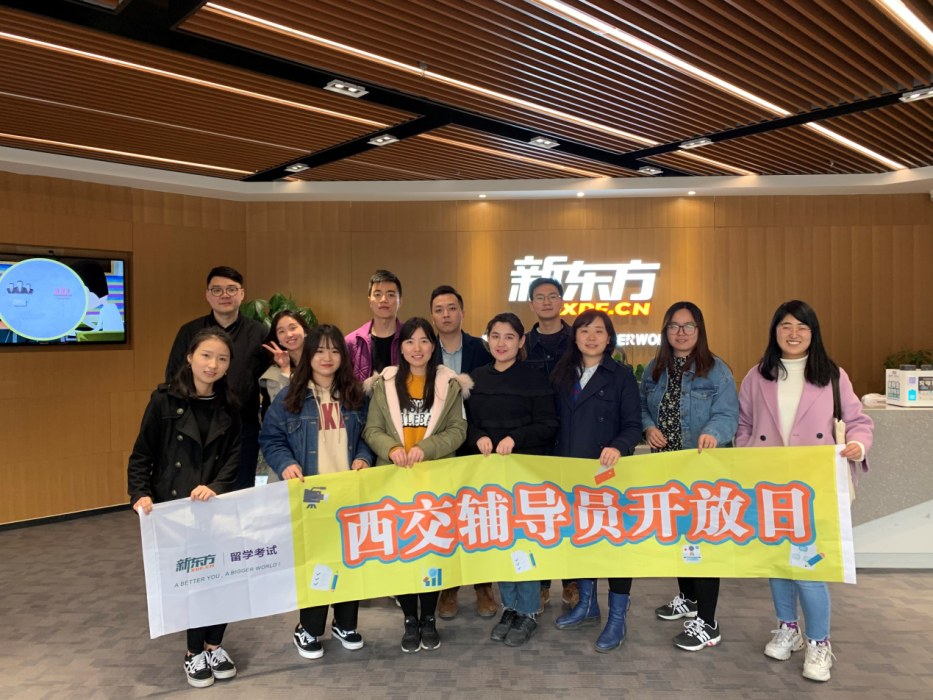 辅导员老师主动对接出国留学深造机构开展调研学习,并前往新东方龙湖天街校区参加开放日活动,新东方工作人员表示对我校辅导员的热烈欢迎,并带领大家对校区进行参观。