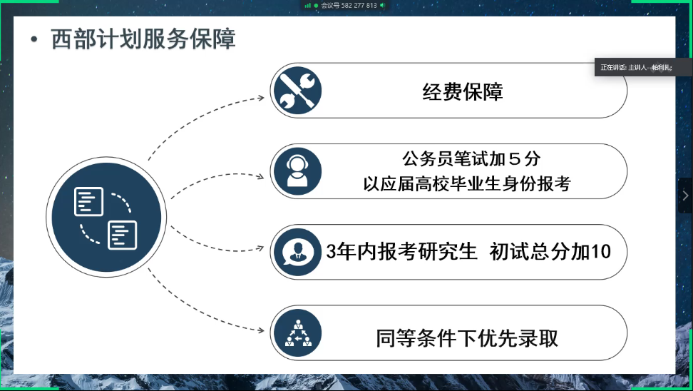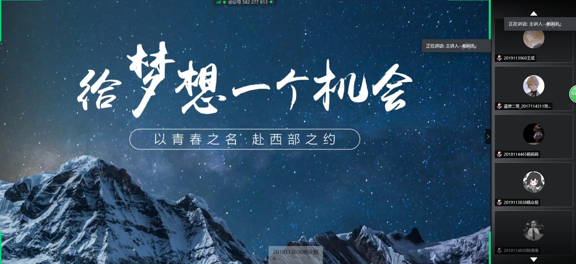 最后,帕利扎·尼亚孜学姐分享了各地西部计划志愿者案例以及她自己在西部计划的经历。分享了在参与西部计划过程中所学到的知识以及收获,这是一次实现人生理想和信念的一次经历。随后学姐回答了同学们关于西部计划的一些相关问题,学姐悉心回答,同学们反应良好。